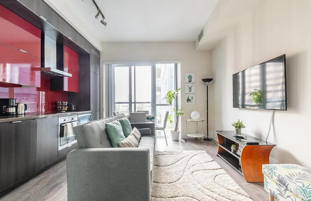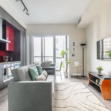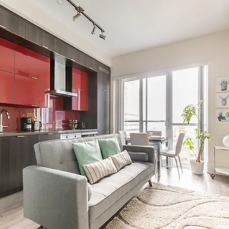 ベッドルーム1室のModern Suite W City Views - Downtown トロント 別荘は、フィットネスセンターを利用できるアクティブな顧客を魅了し、ロジャース・センターから0.6kmの場所にあります。 Wi-Fiを提供する宿泊施設は、地下鉄駅セント・アンドリューすぐ近くです。