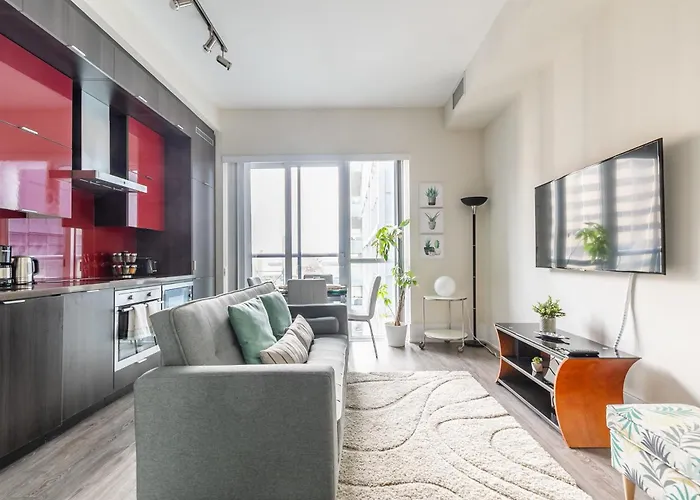 別荘はトロントの中心に位置し、Cnタワーから徒歩で5分の場所にあります。 Hto 公園から0.9km離れた所にあります。 宿泊施設から徒歩で20分離れたCf トロント・イートン・センターも訪れることができます。